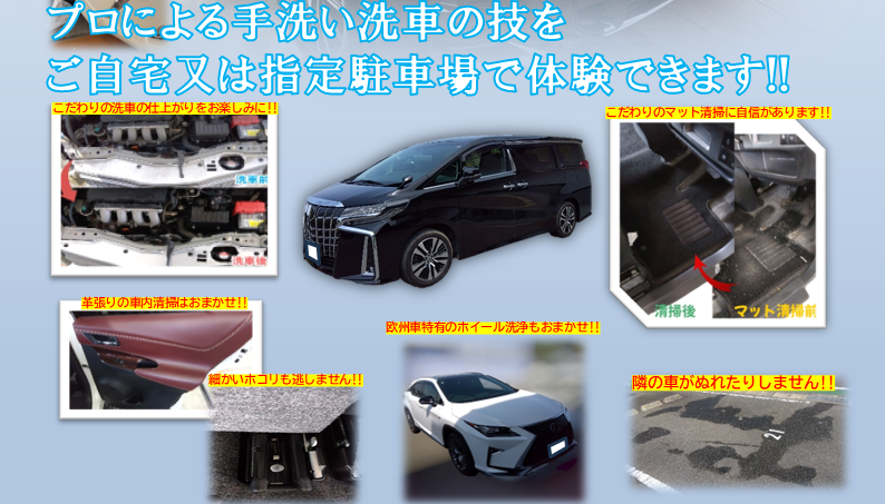 当店は、出張型の手洗い洗車と車内清掃専門のサービスを提供しています。